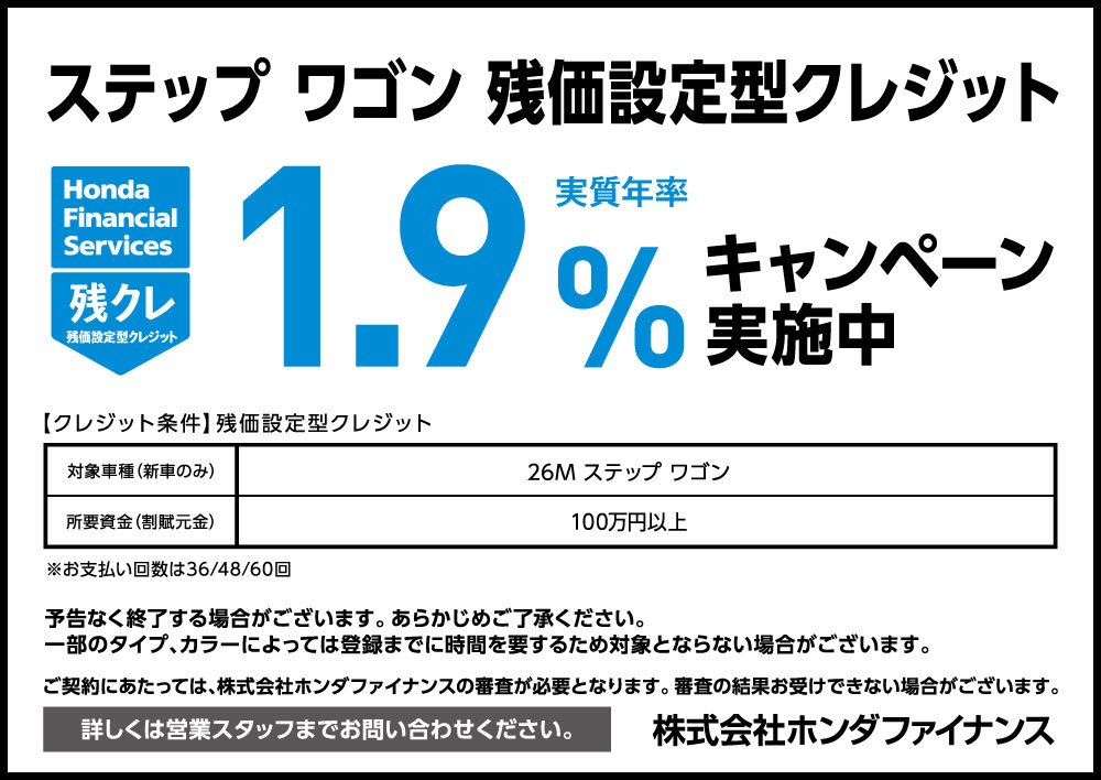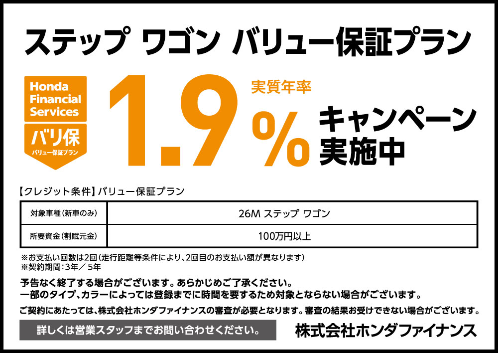 対象車種がSTEP WGN e:HEV AIRのキャンペーン